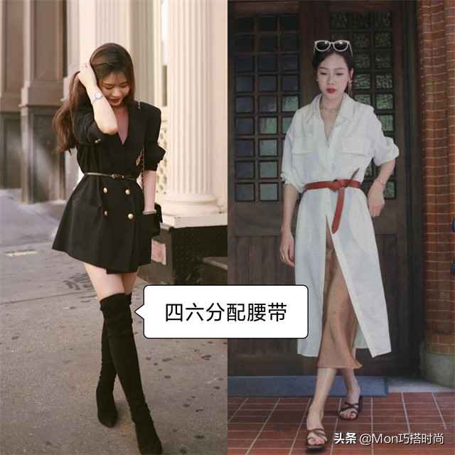 如果你有一条连衣裙,试试外加腰带,打造四六分的黄金比例。