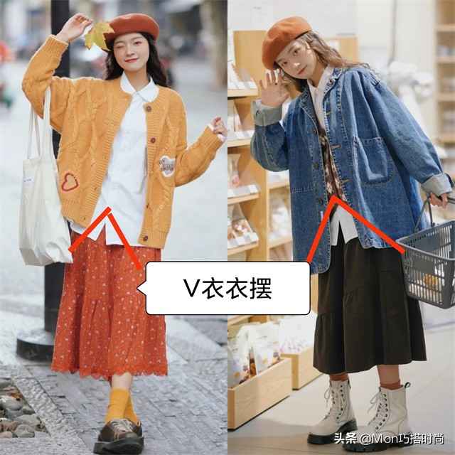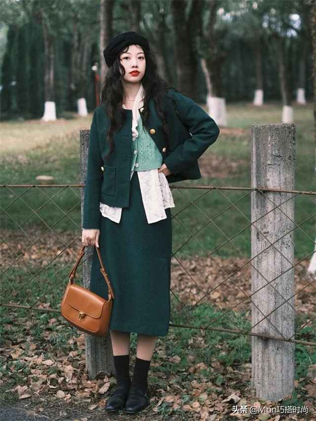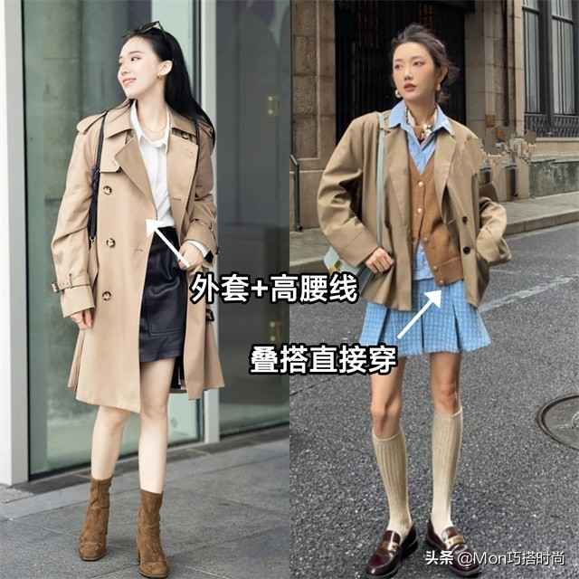 修身A字或铅笔短裙适合塞衣角配外套,加厚底鞋或短靴平衡。如果是伞裙,上衣直接叠穿更少女。