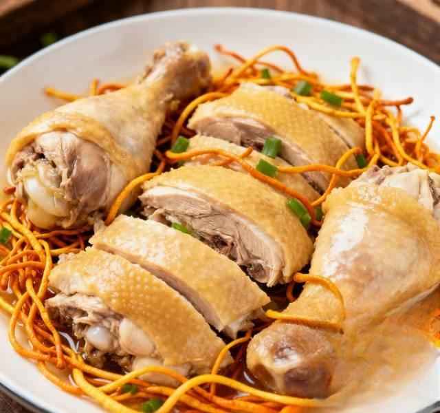 普通市场的虫草素含量低,要认准西藏那曲产,虫草酸≥0.8%,蒸鸡腿前加一点黄酒,多糖析出多22%。