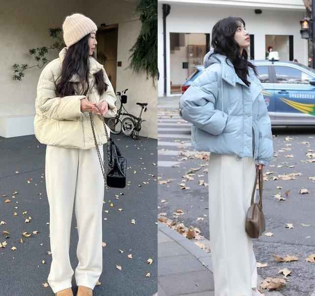 羽绒服更轻便了,穿起来特别舒服,配上垂感好的白裤子,一点都不会显得臃肿。