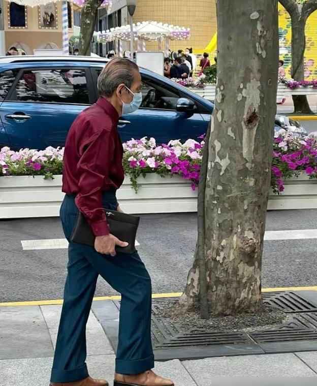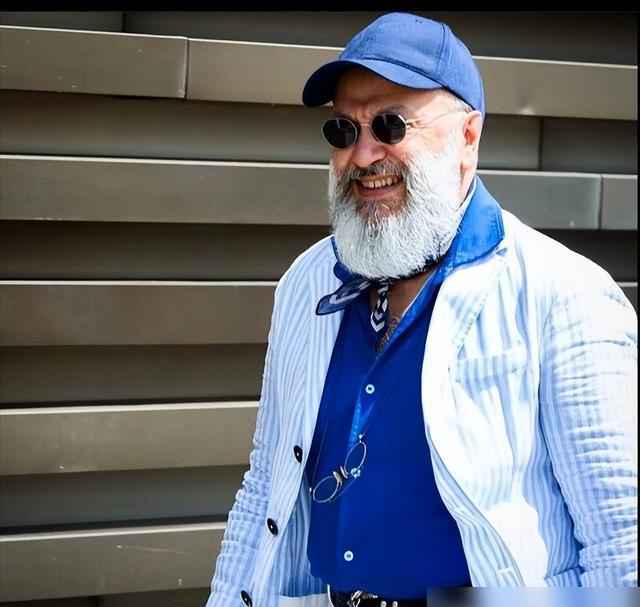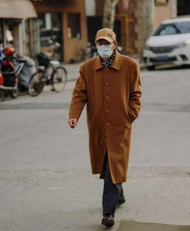 上周他女儿帮他换了一套行头:海军蓝短款羽绒服搭配浅驼色高领羊毛衫,下身是深咖色直筒休闲裤,头戴灰色棒球帽,脚踩白底复古跑鞋,人还没开口,那股精神头就先扑面而来。