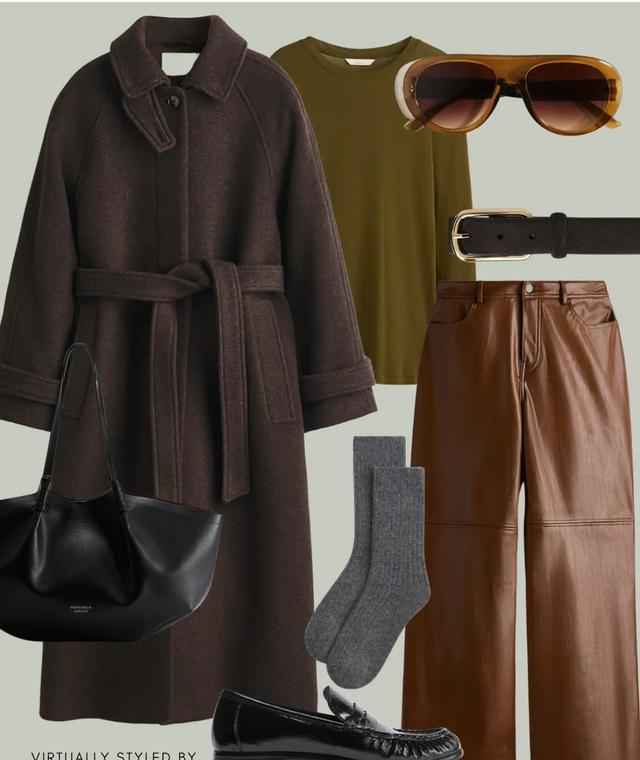 比如羊毛大衣,不一定非得选传统款,把腰带系在高腰位置,就能塑造X形轮廓,瞬间拉长腿部线条。