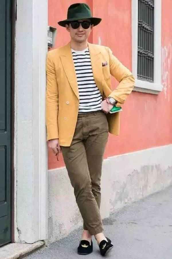 如果你觉得全身穿搭有点闷,颜色太素了,想搞点小花样,那就在袜子上做文章!这就是所谓的“1:9配色法”,用十分之一的亮色来点亮全身九成的基础色-8。一双色彩鲜艳或者带有趣味图案的袜子,能让一套普通的穿搭立刻活起来,显得你特别有心思。