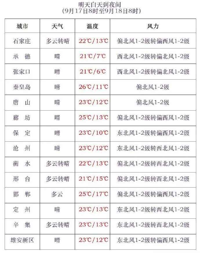明天夜间到18日,保定西部、石家庄、邢台、邯郸晴转多云,其他地区晴间多云。