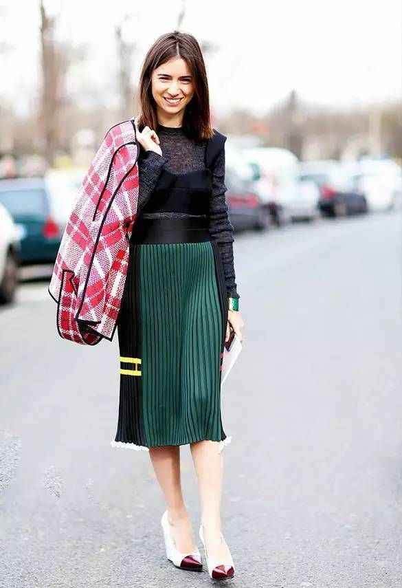 一条过膝的中长半裙:迷笛裙(长度到小腿中间)简直是神一般的存在,既优雅又能遮住腿部所有怕冷的地方-10。无论是搭配针织衫还是卫衣,都能轻松融合温柔与休闲感。