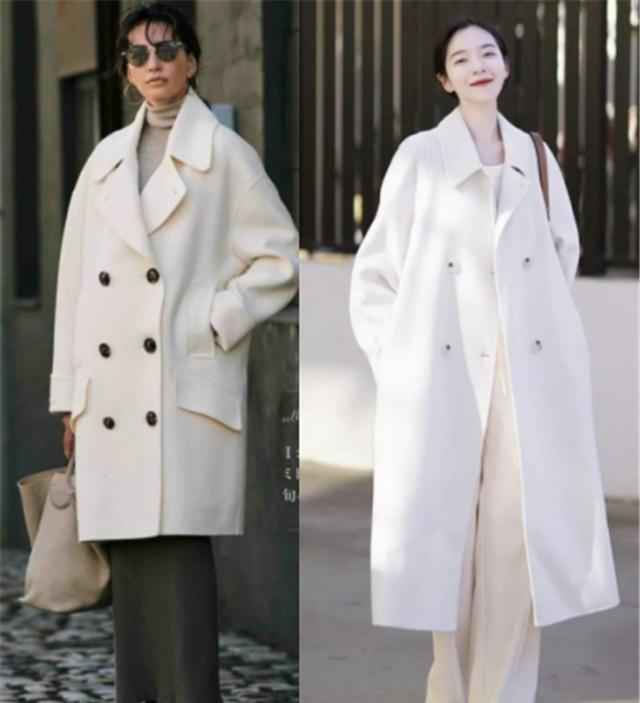 - 配色:米白或浅驼大衣配深灰或黑阔腿裤,清爽又稳重。