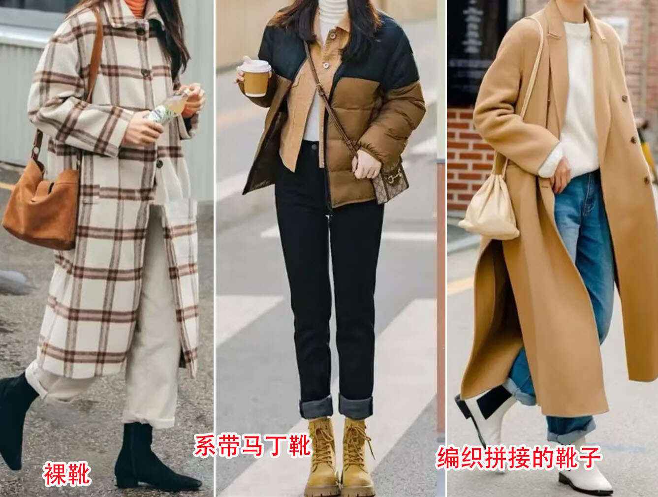 靴子就没这问题。觉得闷可能是款式没选对,像图中的裸靴、马丁靴或拼接靴,既保暖又显气质。