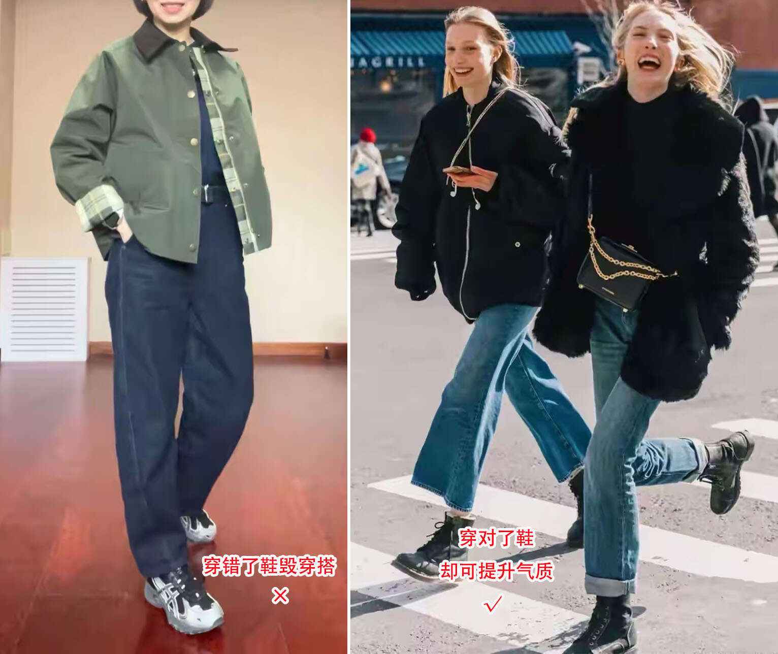 当然,可能有人会怀疑这种穿法,别急着下结论!先看看下面这6组穿搭对比图,你就明白我为什么这么推荐了~