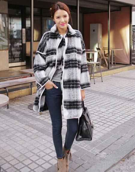 Q1:小个子女生穿长款格子大衣,配什么裤子才能不压身高?