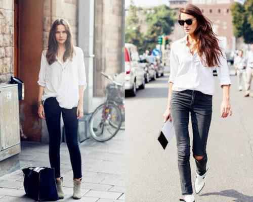 风格碰撞:用牛仔的粗犷去混搭鞋子的精致,比如破洞牛仔裤配一双女性化的尖头猫跟鞋,这种反差感正是时髦精的最爱-8。