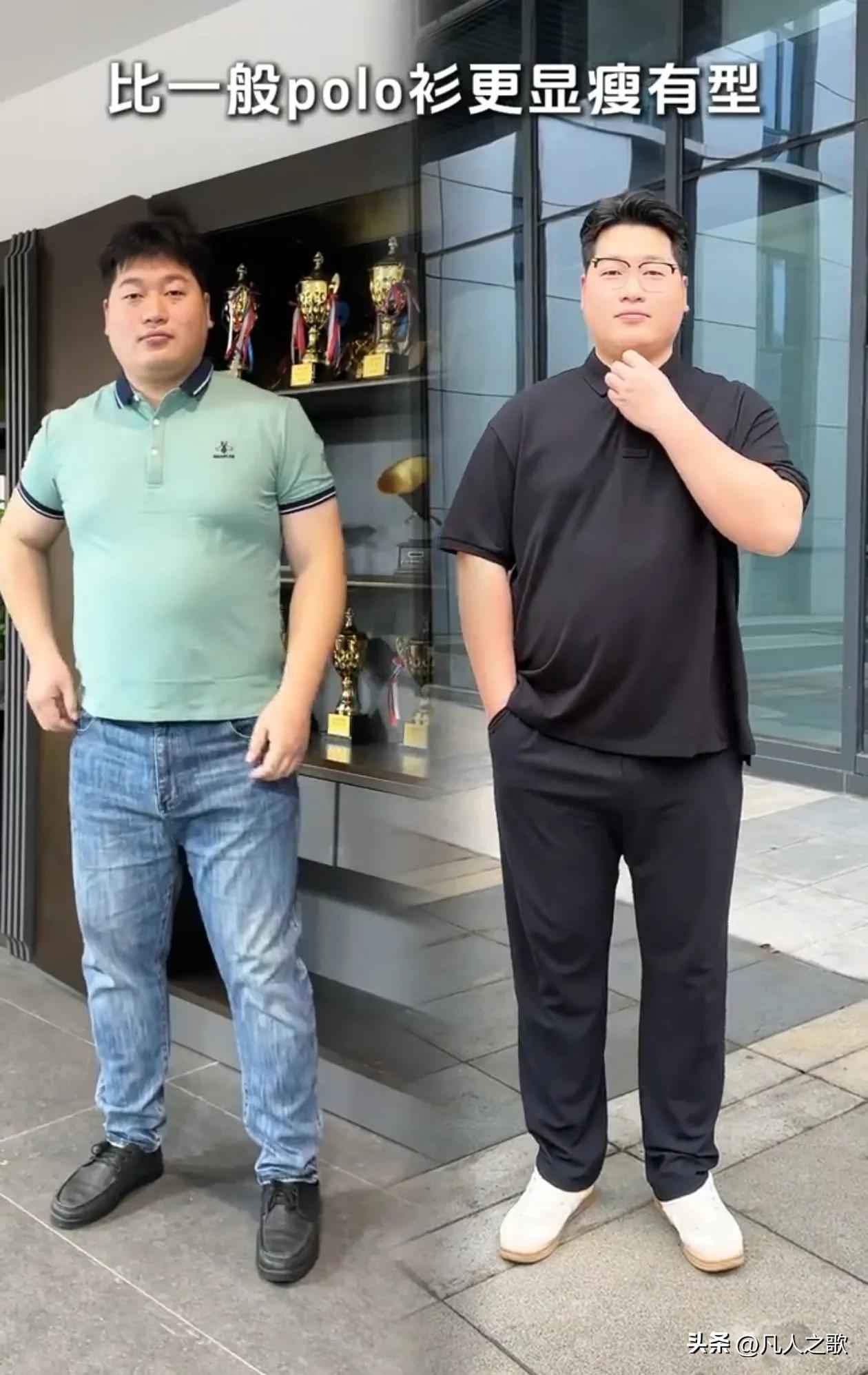 黑色、深灰、藏蓝这些颜色视觉上收缩效果一流,能巧妙淡化肉感。比如用深色POLO衫配黑色直筒裤,整个人立马小一圈。