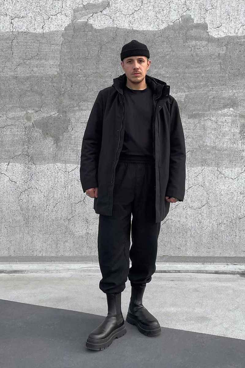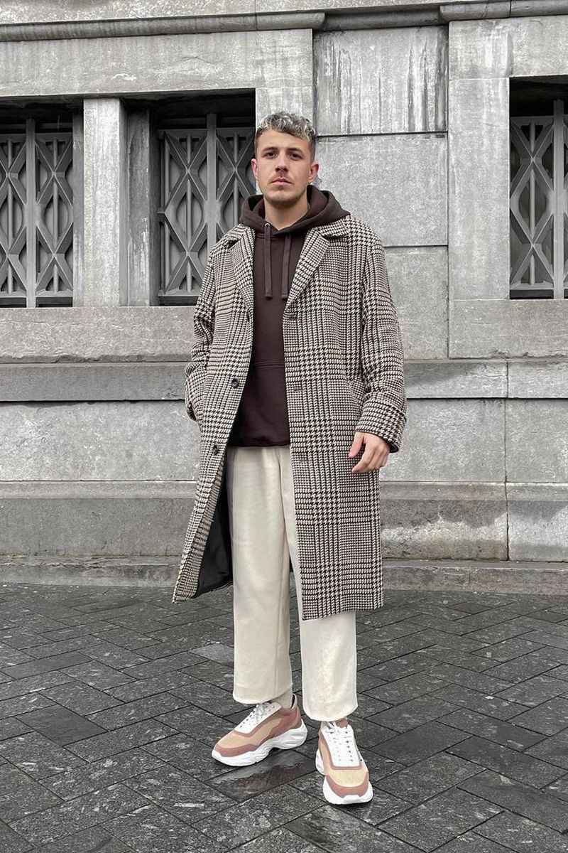 矮个子男士冬天穿衣,可以先从颜色搭配下手。如果一身造型色彩太杂,还层层叠叠,容易显得割裂,更显矮。试试鞋裤同色的组合,用整体感来优化比例。
