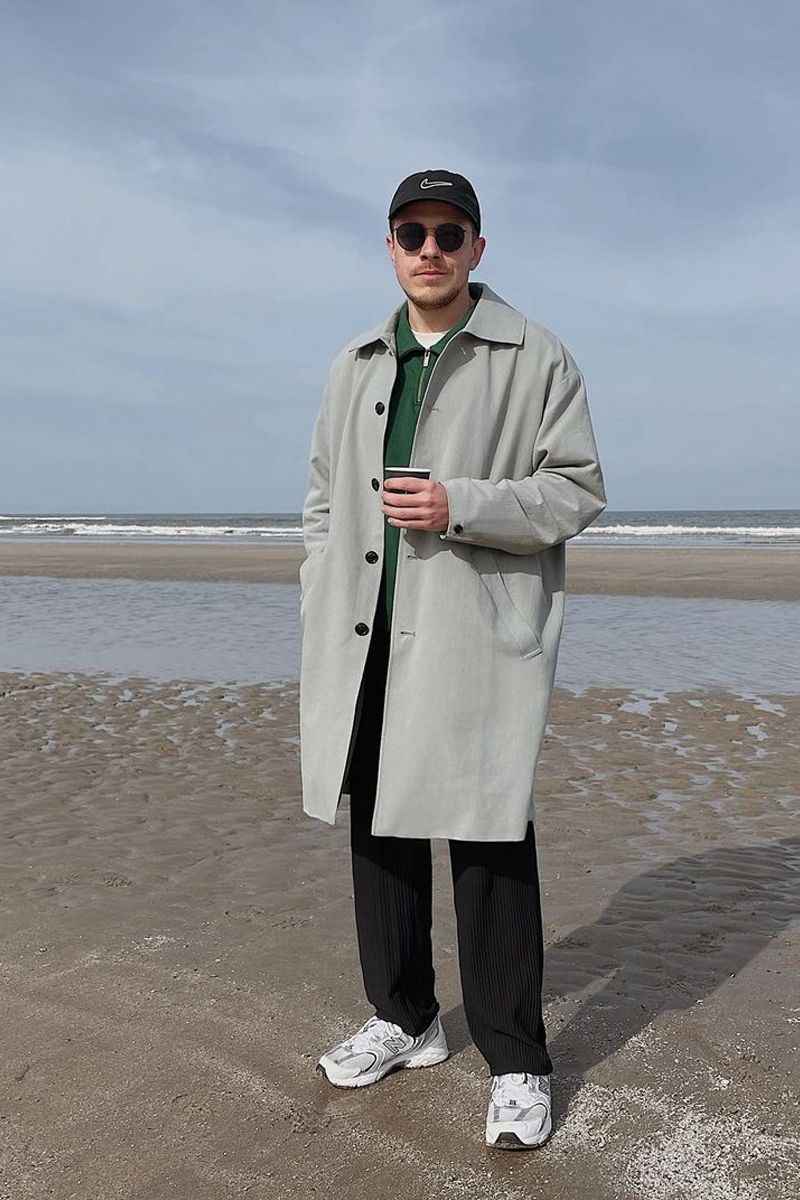长外套的版型不能太紧或太宽。太修身会显得小气,太宽松又撑不起来。选宽窄适中的款式,才能穿出挺拔感。