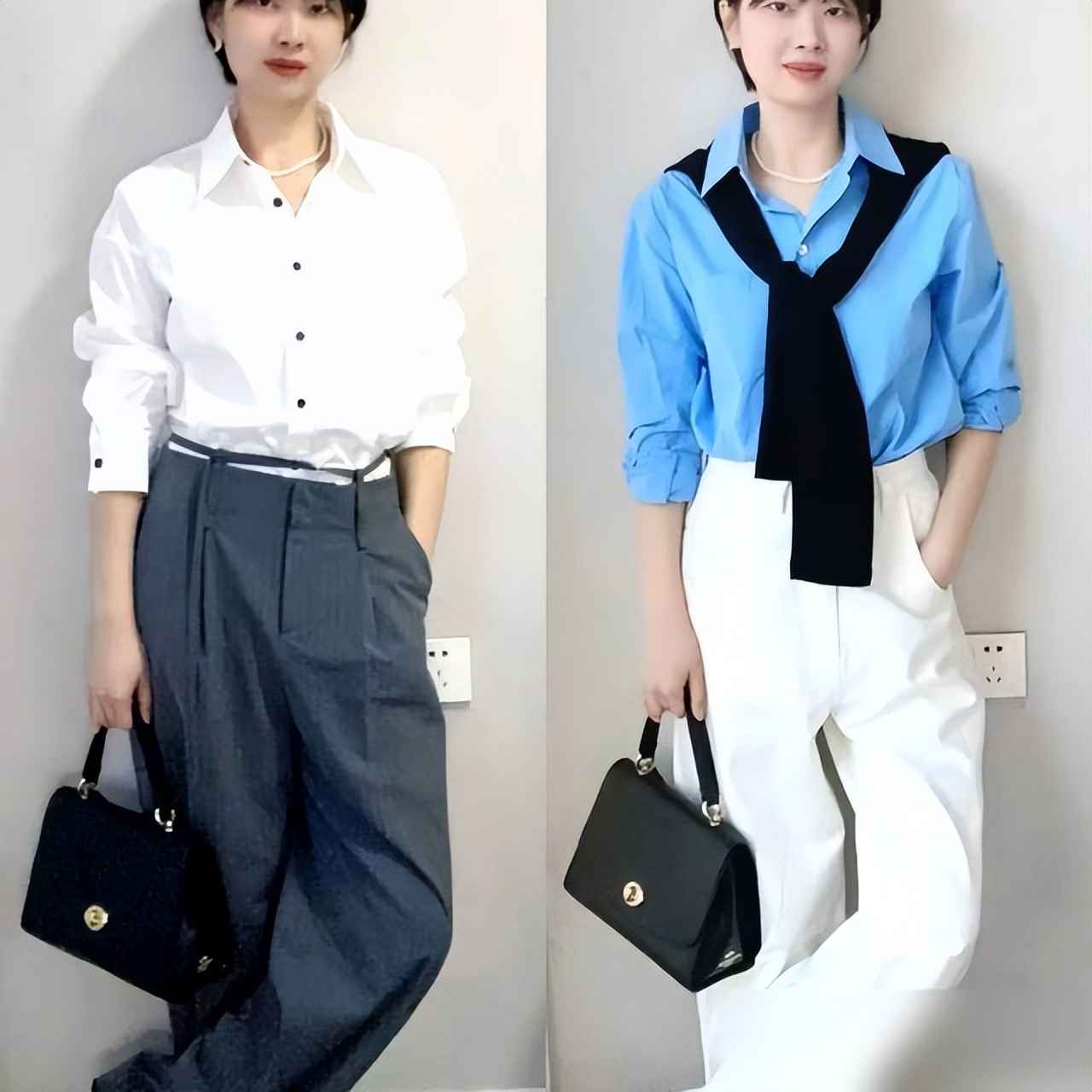 我有个朋友,每天上班就穿合身的白衬衫配黑色九分裤,把衣角塞进裤子,再穿双高跟鞋,客户都夸她看起来专业又利落——根本不用早上花时间挑衣服。