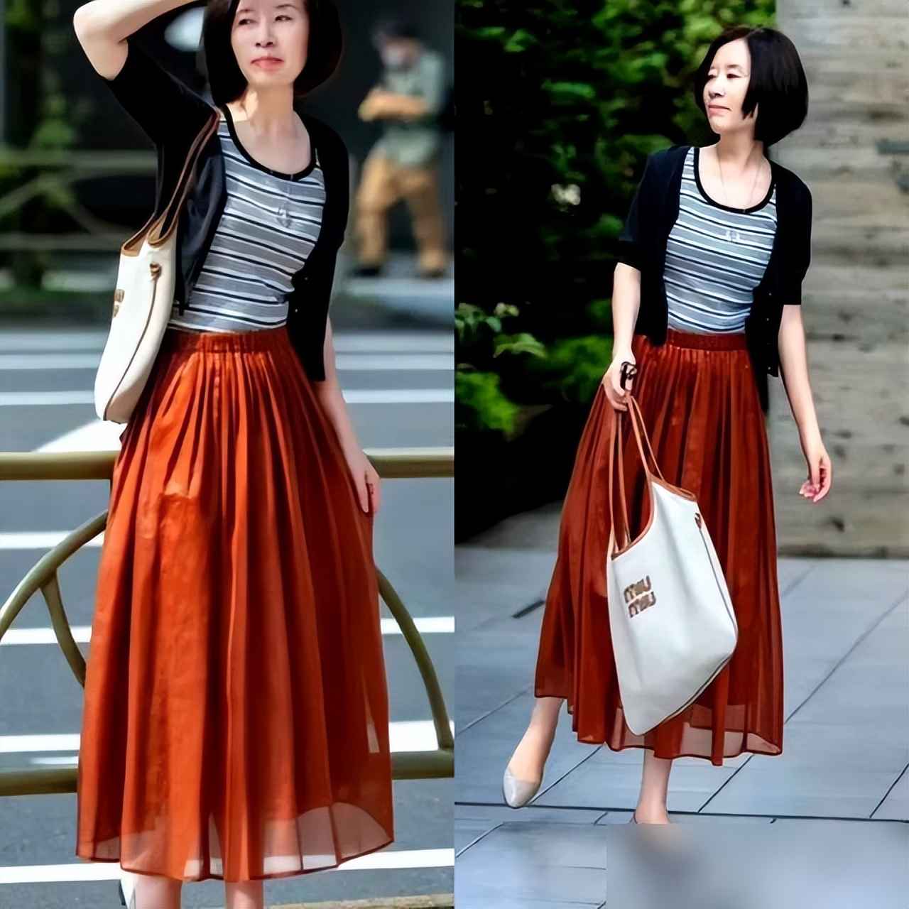 休闲时可以“宽松搭配”,但要有分寸:比如宽松白衬衫配灰色阔腿裤,我会把衣角稍微塞一点,不然像披着毯子;连衣裙选略宽松的,配白凉鞋和黑帽子,稳重中带点俏皮,比短裙舒服多了,接孩子时老师都夸“有气质”。