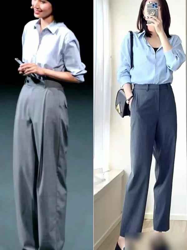 我上周穿了件合体的白衬衫(不紧不松),配黑色九分裤,裤长到脚踝,加双粗跟鞋,同事说“你今天像职场剧里的主角”——其实就是因为衣服合身。