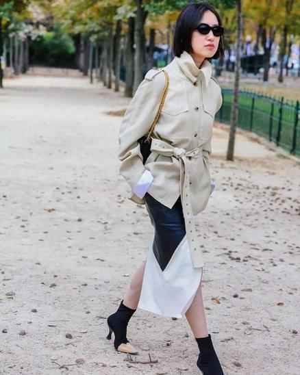 单色系、有垂坠感的服饰能带来高级的修饰效果,让身材曲线更显流畅柔美。如果实在喜欢宽松的男友风单品,记得一定要搭配一条窄腰带,手动制造腰线。