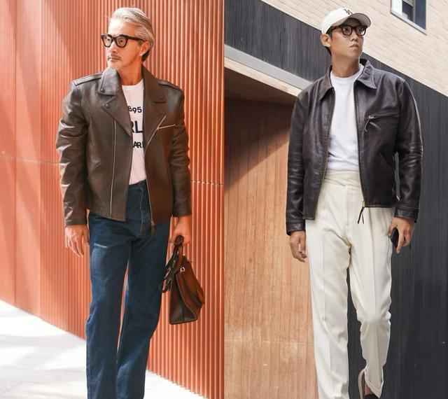 - 皮夹克:质感加分,男人味瞬间提升