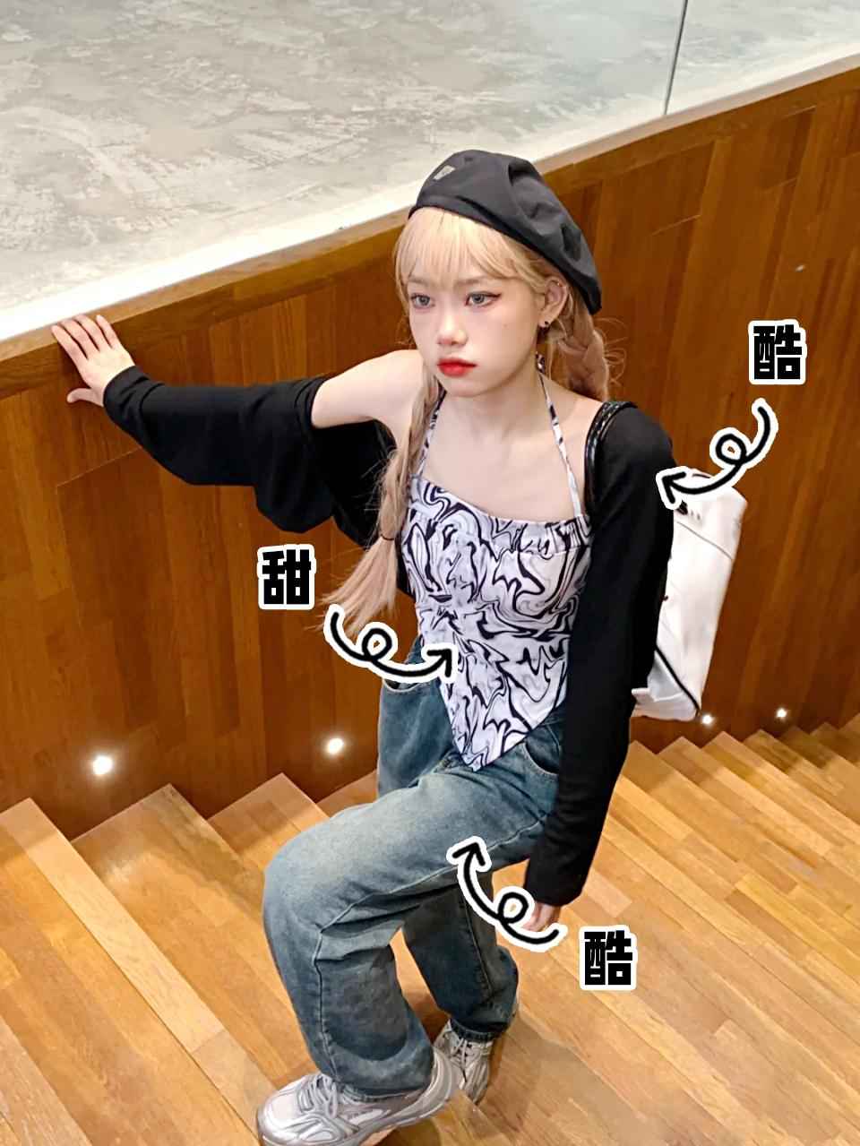 这套偏复古,千禧辣妹风。日常上课或社团活动都行。