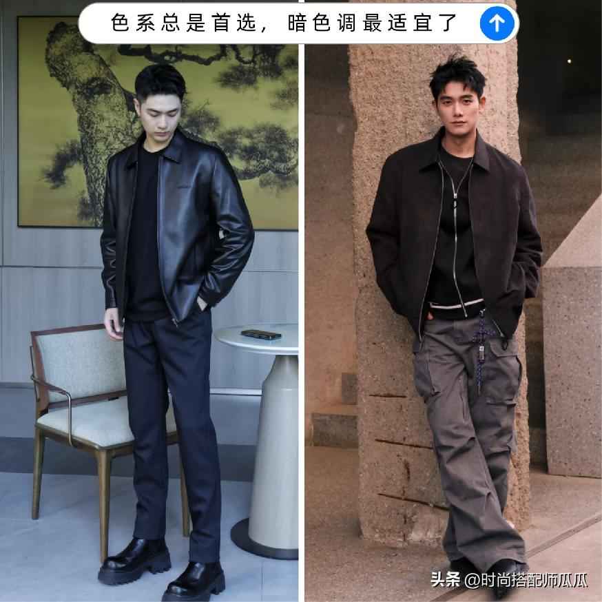 颜色搭配技巧:同色系最安全,比如深浅不同的色调组合,避免突兀。微胖男生选暗色衣服,能视觉收缩,显得苗条。