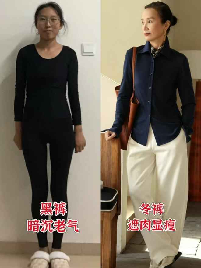 ③:黑色阔腿裤对比牛仔冬裤