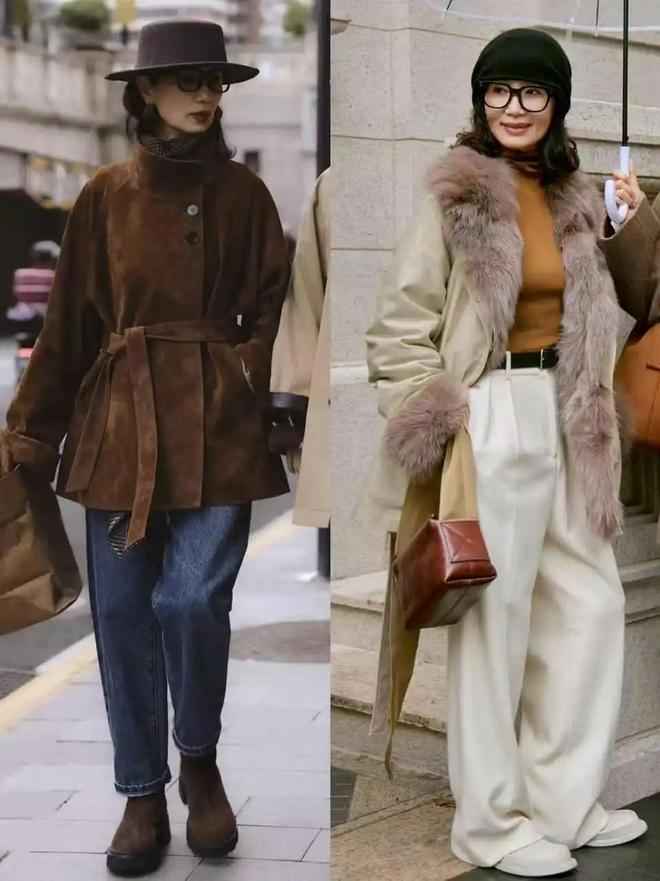 比如三木博主常穿灰色大衣配针织衫和白色直筒裤,她妈妈则爱用卡其色风衣搭白色阔腿裤。这两套配色简洁,但高级感十足。